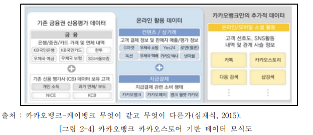 카카오뱅크와 케이뱅크 모두 빅데이터를 기반으로 한 중금리 대출을 주요 사업 추진 모델로 전략을 설정하고 있으며 기존 은행은 제공하지 못했던 차별화된 간편한 서비스의 제공을 통해 시장을 공략하고 있는 점에서 공통점을 가지고 있다.