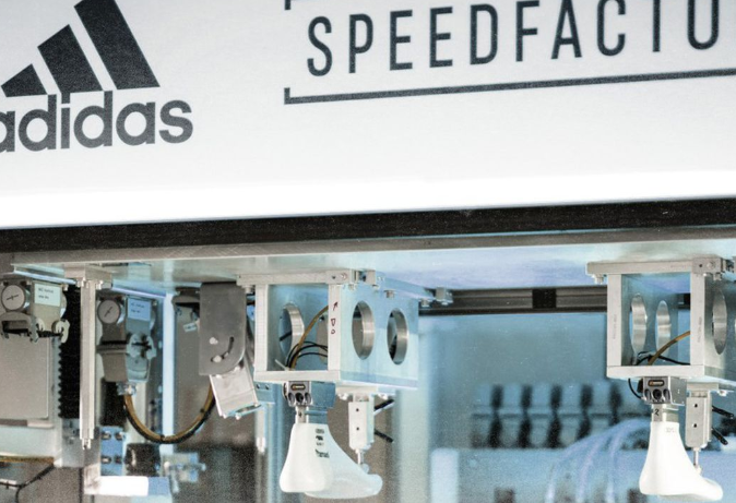 대표적인 사례가 아디다스(ADIDAS)의 스피드 팩토리(SPEED FACTORY)이다. 스피드 팩토리는 독일의 안스바흐에서 2015 년 시범으로 가동되었고, 기존에 6 주가 소요되던 신발 제작과 배송기간을 5일로 줄였다. 스피드 팩토리는 CPS 기반의 디지털 트윈(Digital twin) 솔루션과 진보된 자동화 기술을 통해 전통적인 디자인 – 생산 – 유통의 구조를 모바일을 통한 개별 주문과 3D 프린팅을 통한 개별 생산 후, 소비자에게 직접 배송되는 구조로 진행된다.